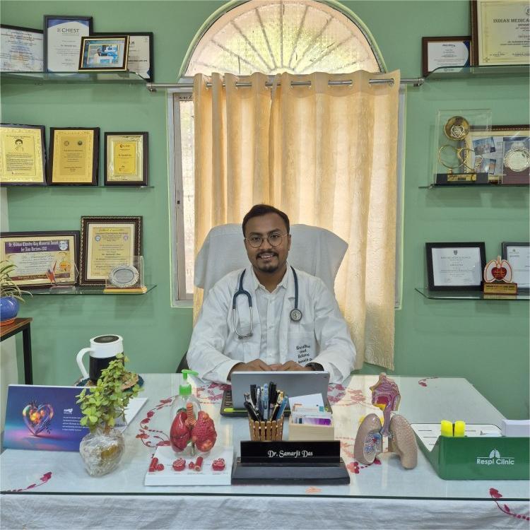 Dr. Samarjit Das is a passionate and highly qualified pulmonologist with a deep commitment to patient care. He holds an M.B.B.S. (Hons) and an M.D. in Pulmonary Medicine, where he was awarded a Gold Medal for academic excellence. He has further specialized with a European Diploma in Adult Respiratory Medicine, completed advanced training at Harvard Medical School (A.M.R.D.), and is certified by the European Board in Sleep Medicine.